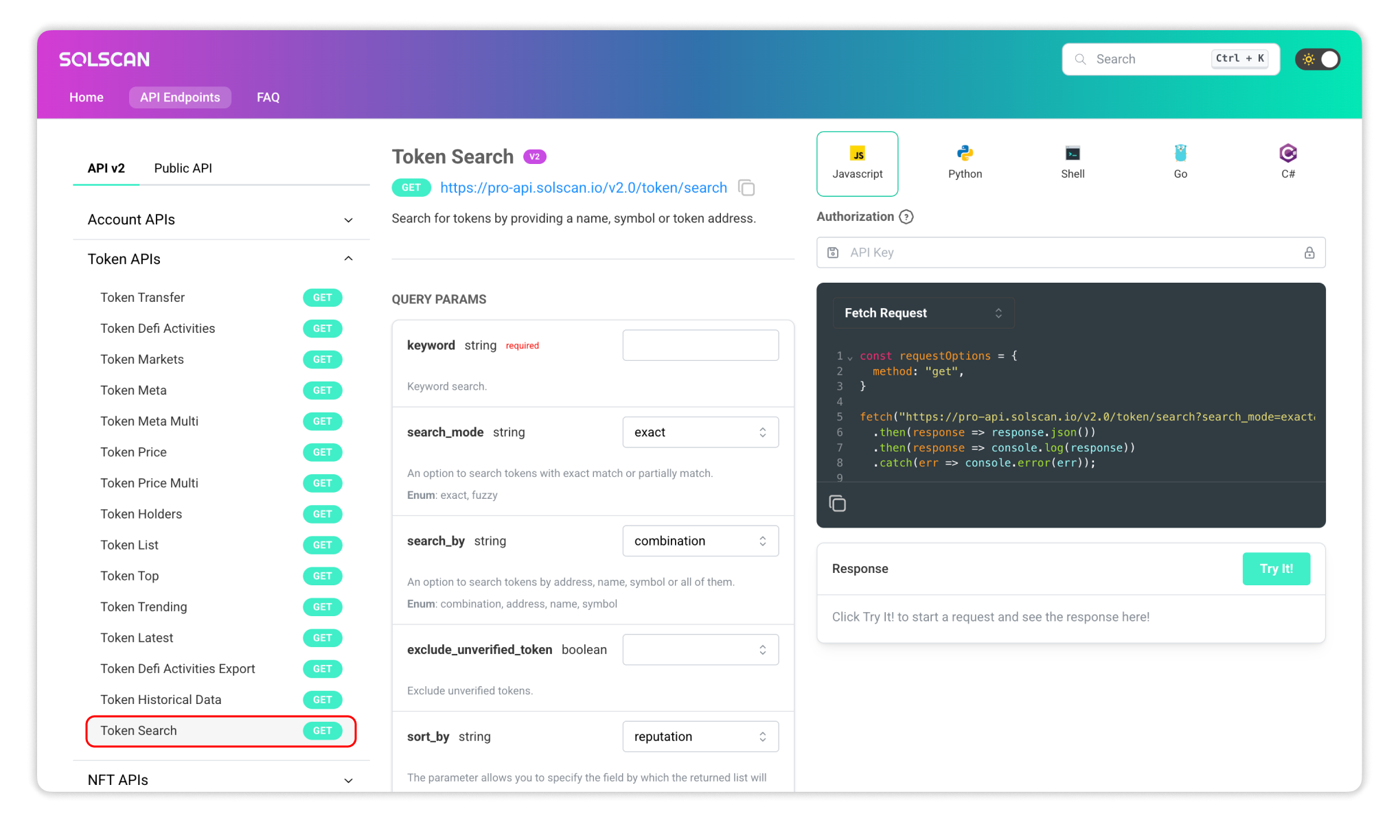 Solscan Pro API Token Search