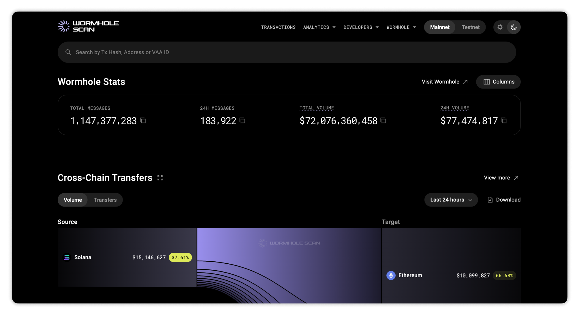 Built for Wormhole’s cross-chain messaging system, this explorer tracks VAA attestations, cross-chain transfers and token movements between networks. Its scope is specialised and mainly relevant for users analysing bridging activity.